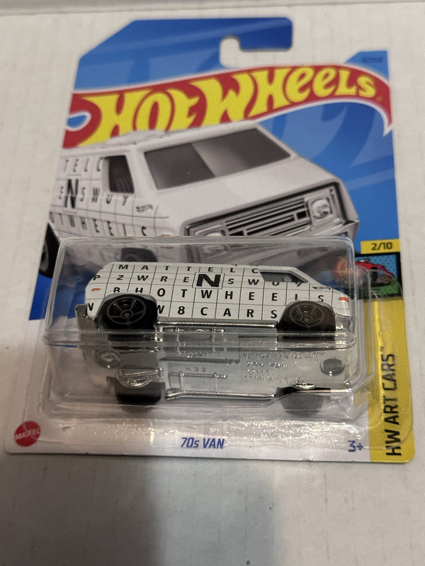White 70s Van HW Art Cars 2/10 16/250 HKH46 2021 Hot Wheels Diecast Car