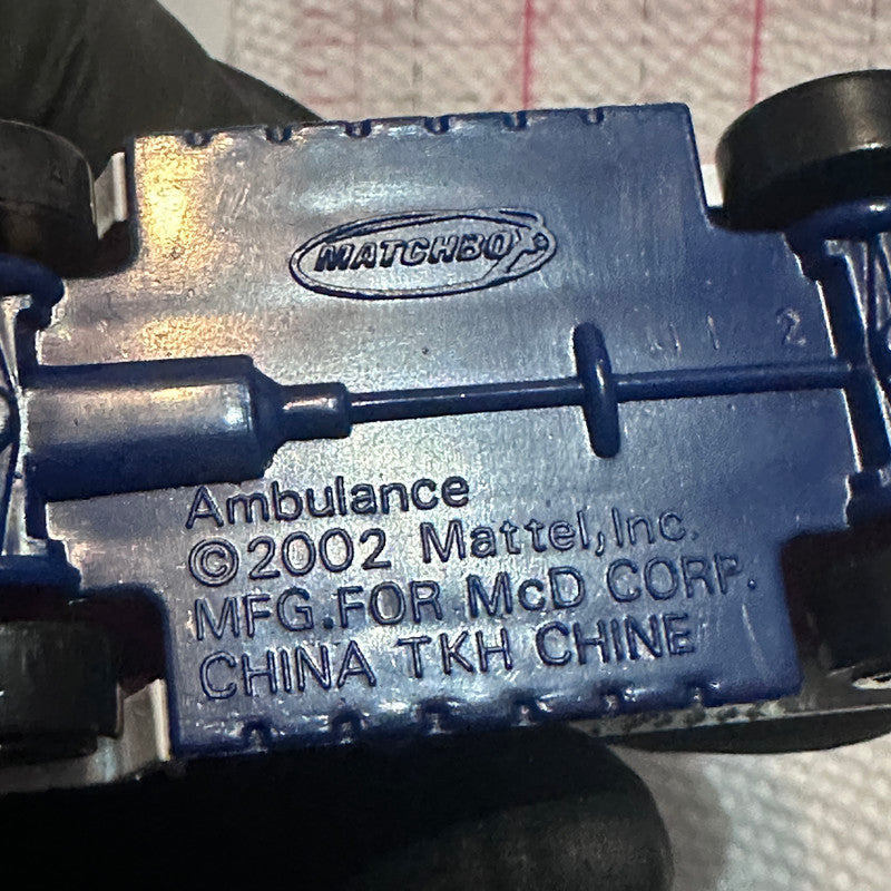 White Ambulance ©2002 Mcdonalds Matchbox Diecast Car