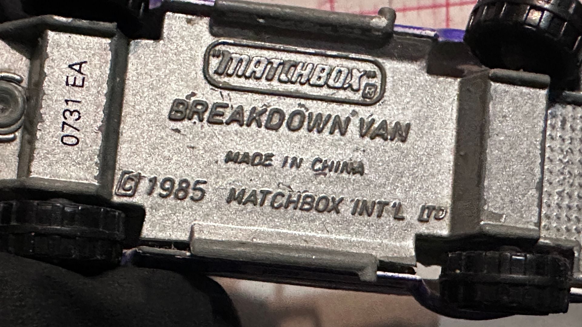 White Blue Breakdown Van ©1985 Matchbox Diecast Car