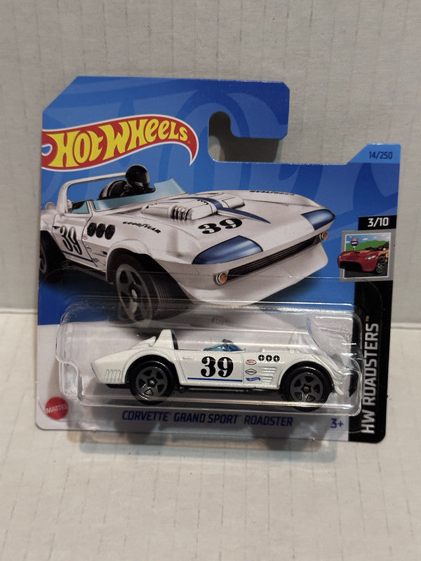 White Corvette Grand Sport Roadster HW Roadsters 3/10 14/250 HKK09 2021 Hot Wheels Diecast Car