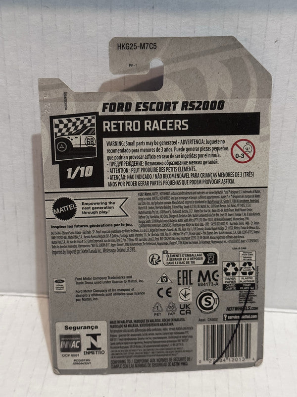 White Ford Escort RS2000 Retro Racers 1/10 4/250 HKG25 2021 Hot Wheels Diecast Car