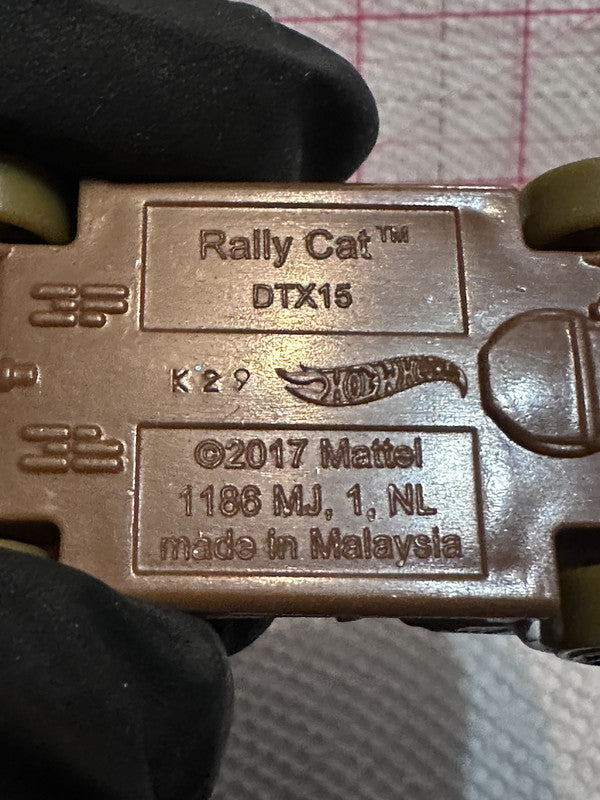 White Rally Cat DTX15 ©2017 Hot Wheels Diecast Car