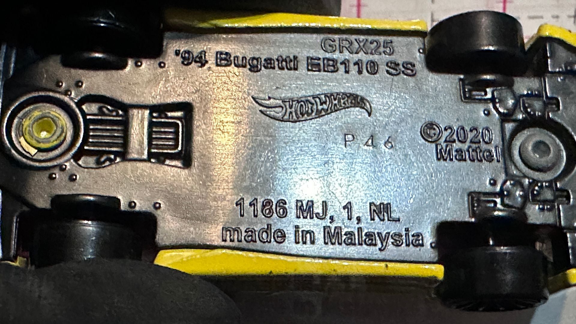 Yellow '94 Bugatti EB110 SS GRX25 ©2020 Hot Wheels Diecast Car