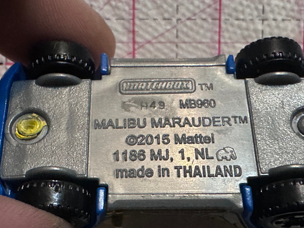 Yellow Blue Malibu Marauder MB960 2015 Matchbox Diecast Car
