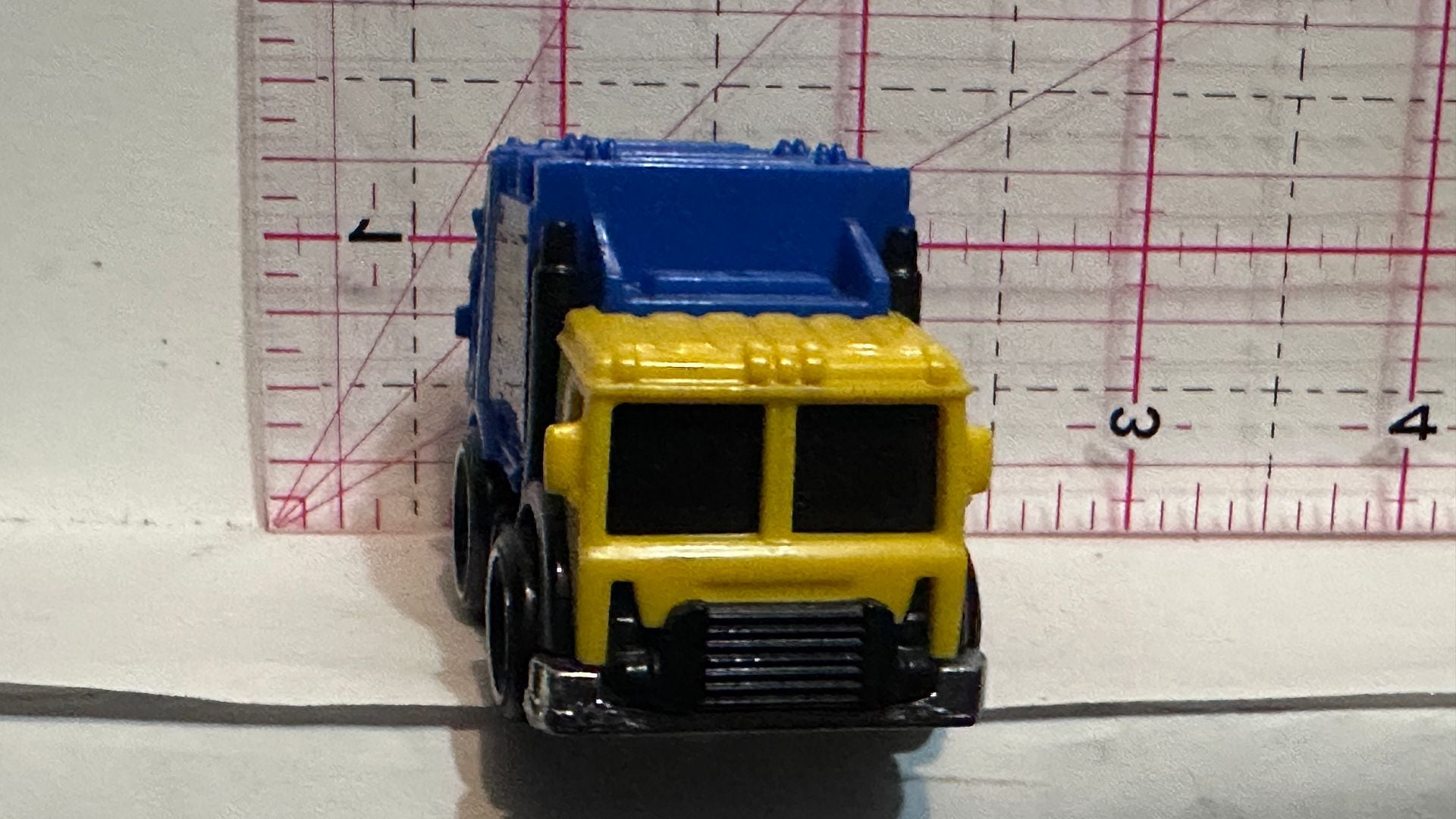 Yellow Blue Total Disposal Garbage Truck GHB66 ©2019 Hot Wheels Diecast Car