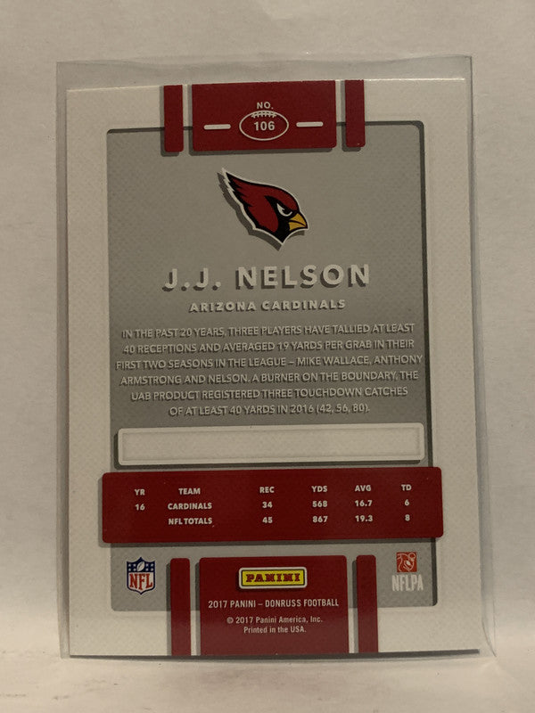 #106 J.J. Nelson Arizona Cardinals 2017 Donruss Football Card