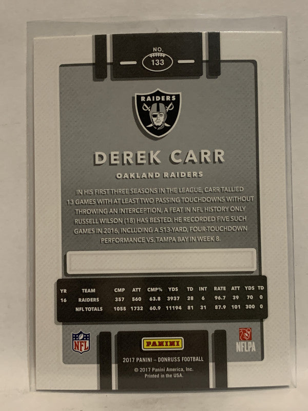 #133 Derek Carr Oakland Raiders 2017 Donruss Football Card