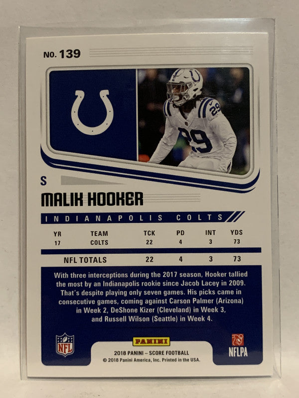#139 Malik Hooker Indiana Colts 2018 Score Football Card