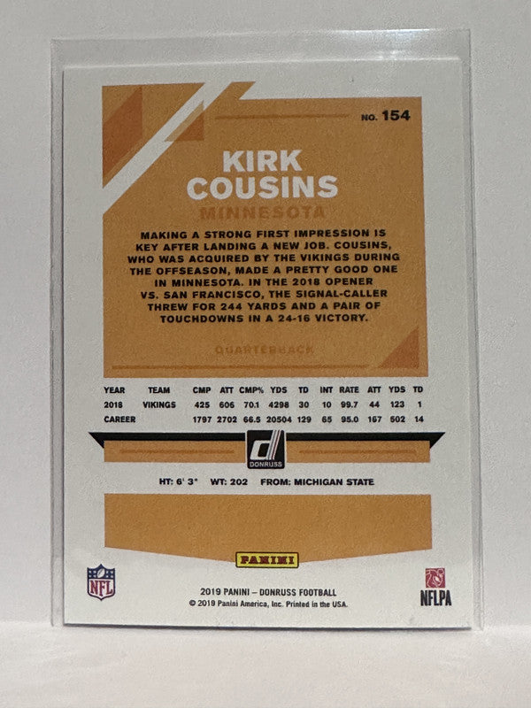#154 Kirk Cousins Minnesota Vikings 2019 Donruss Football Card