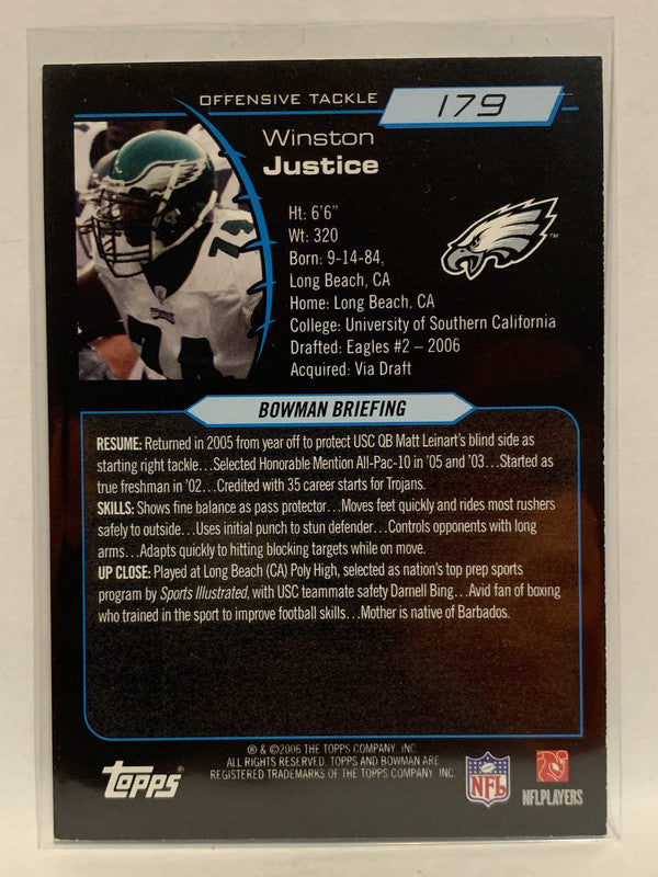 #179 Winston Justice Rookie Philadelphia Eagles 2006 Bowman Football Card NFL