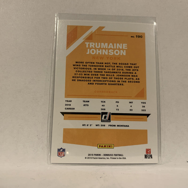 #190 Trumaine Johnson New York Jets 2019 Donruss Football Card AH
