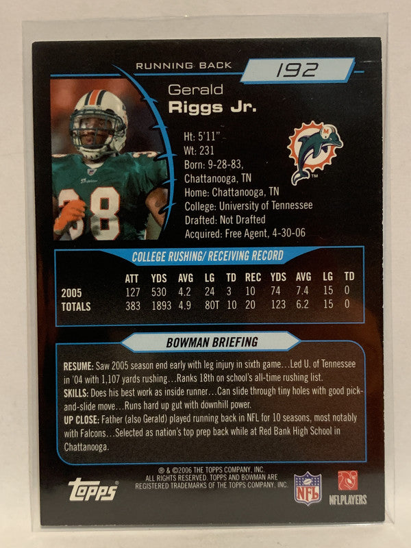 #192 Gerald Riggs Jr Rookie Miami Dolphins 2006 Bowman Football Card NFL