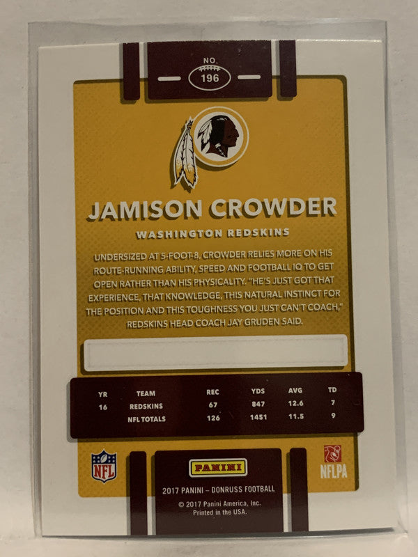 #196 Jamison Crowder Washington Redskins 2017 Donruss Football Card