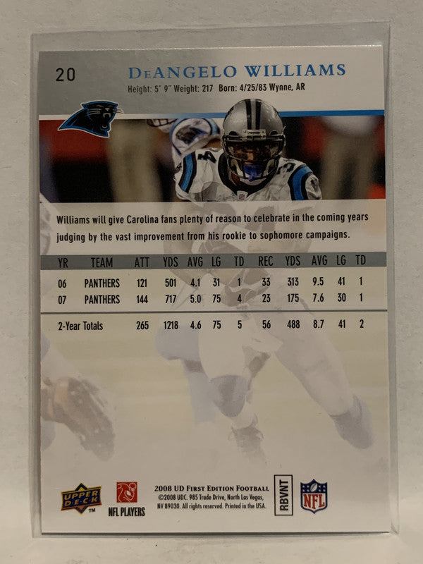 # 20 Deangelo Williams Carolina Panthers 2008 Upper Deck Football Card