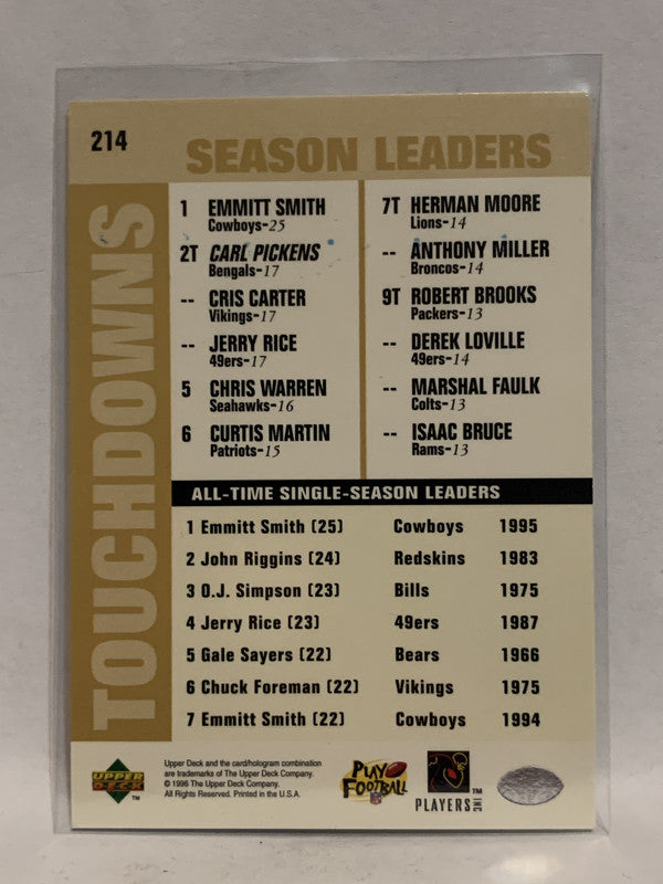 # 214 Carl Pickens Season Leaders Cincinnati Bengals 1996 Upper Deck Football Card