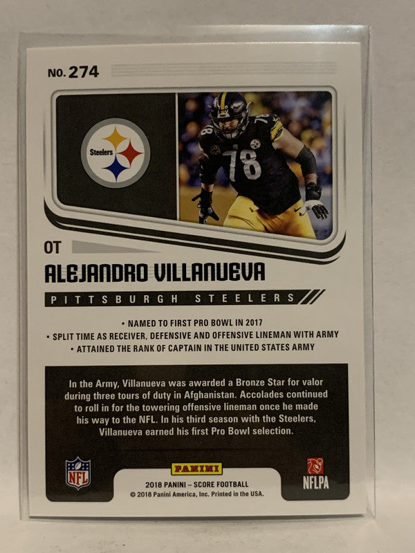 #274 Alejando Villanueva Pittsburgh Steelers 2018 Score Football Card