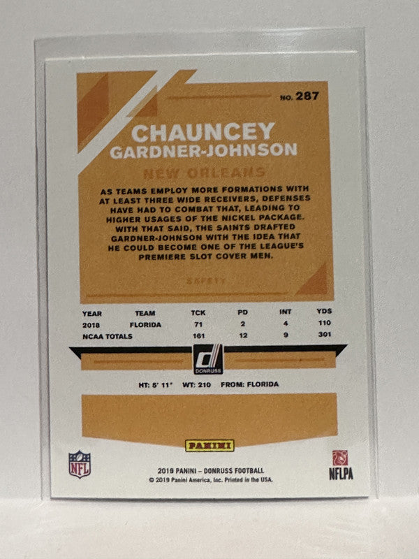 #287 Chauncey Gardner-Johnson Rookie New Orleans Saints 2019 Donruss Football Card