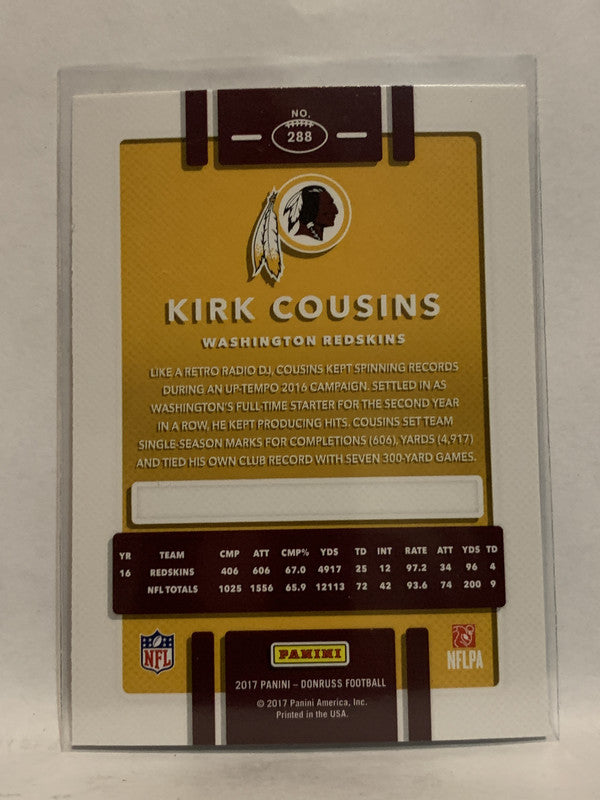 #288 Kirk Cousins Washington Redskins 2017 Donruss Football Card