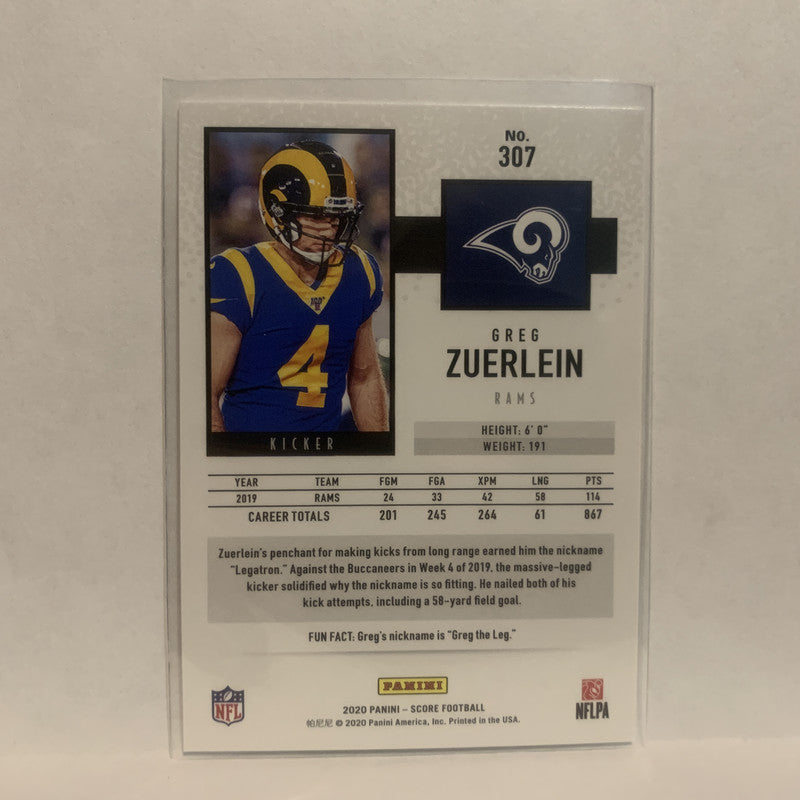 #307 Greg Zuerlein Los Angeles Rams 2020 Score Football Card LV