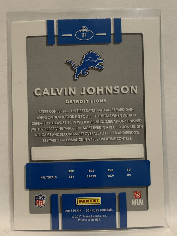 #31 Calvin Johnson Detroit Lions 2017 Donruss Football Card