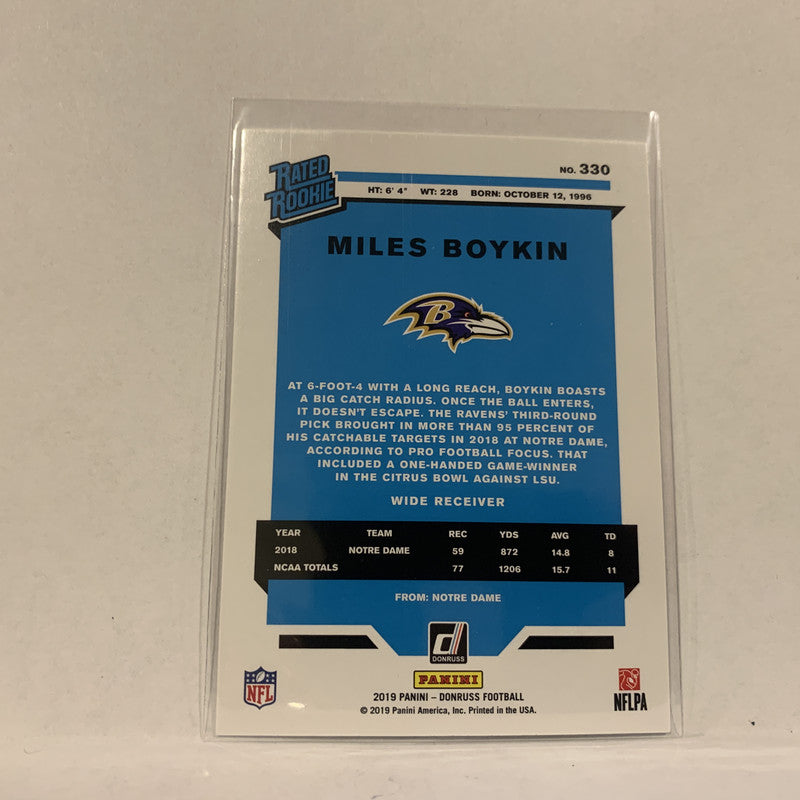 #330 Miles Boykin Baltimore Ravens Rated Rookie 2019 Donruss Football Card AH