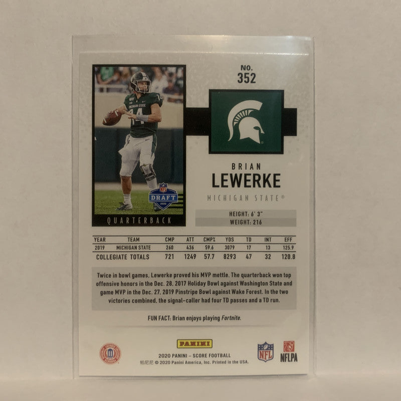 #352 Brian Lewerke Rookie Michigan State 2020 Score Football Card LA