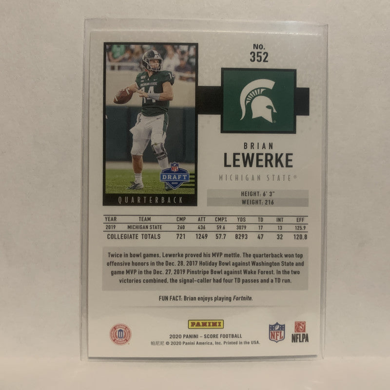 #352 Brian Lewerke Rookie Michigan State 2020 Score Football Card LV