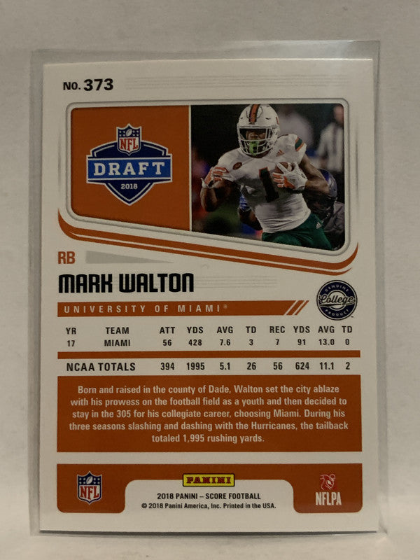 #373 Mark Walton Rookie Draft U of Miami 2018 Score Football Card