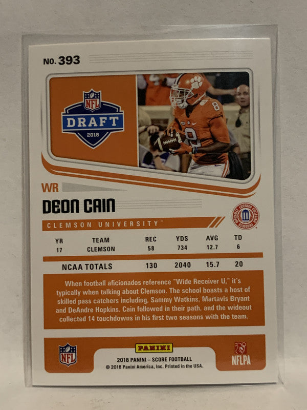 #393 Deon Cain Rookie Clemson Tigers 2018 Score Football Card