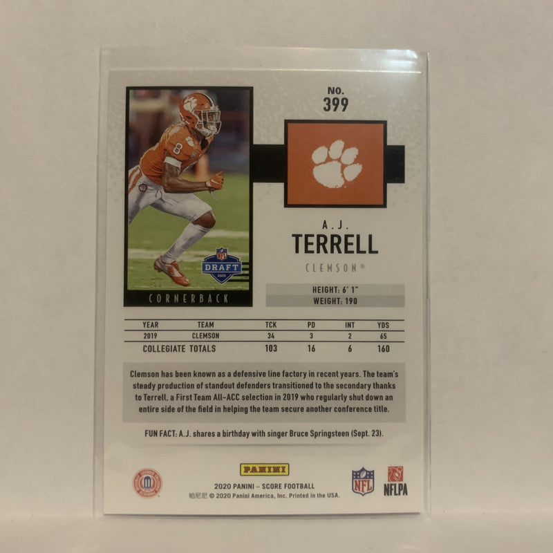 #399 A.J Terrell Rookie Clemson Tigers 2020 Score Football Card LC