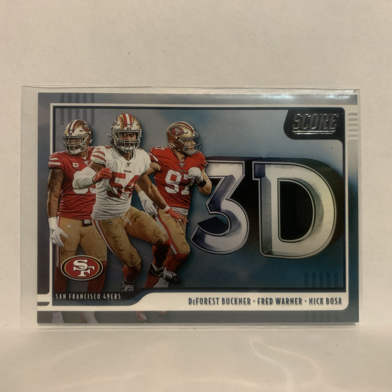 #3D-NFD Buckner Warner Bosa San Francisco 49ers 2020 Score Football Card LG