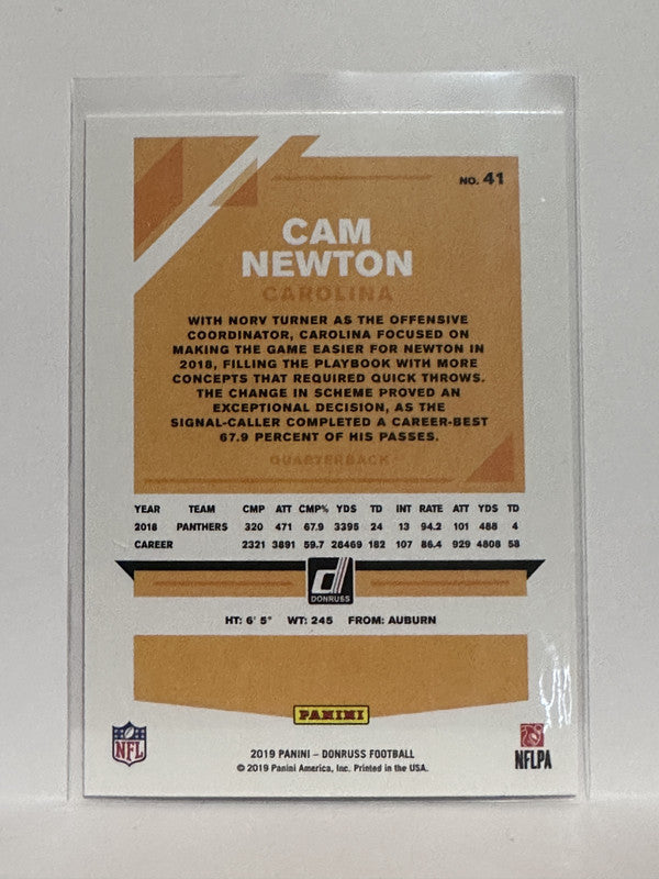 #41 Cam Newton Carolina Panthers 2019 Donruss Football Card