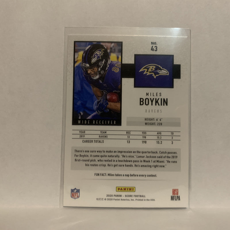 #43 Miles Boykin Baltimore Ravens 2020 Score Football Card LB
