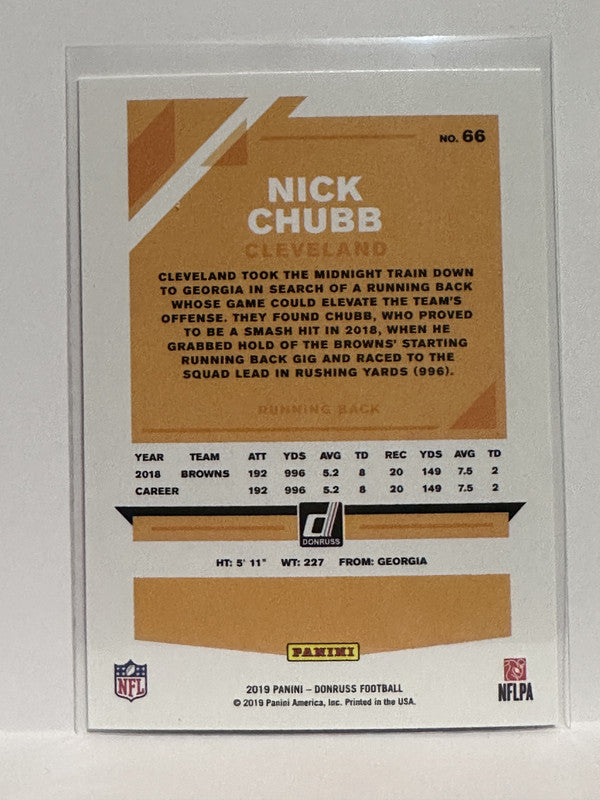 #66 Nick Chubb Cleveland Browns 2019 Donruss Football Card