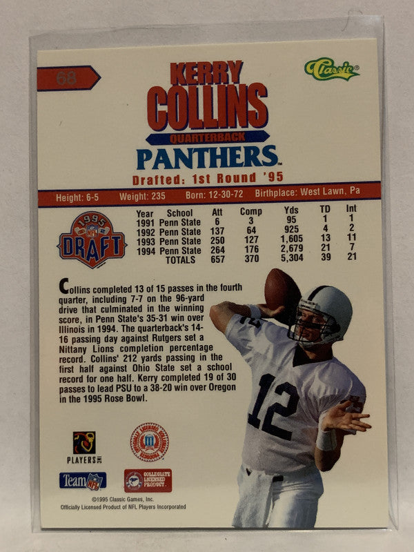 #68 Kerry Collins Rookie Florida Panthers 1995 Classic Football Card NFL