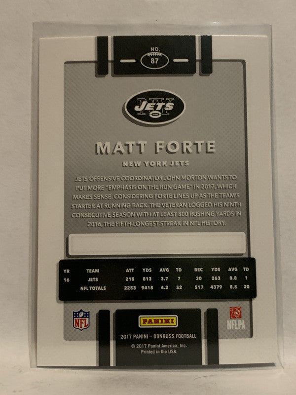 #87 Matt Forte New York Jets 2017 Donruss Football Card