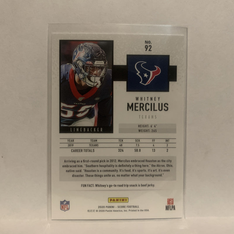 #92 Whitney Merilus Houston Texans 2020 Score Football Card LR
