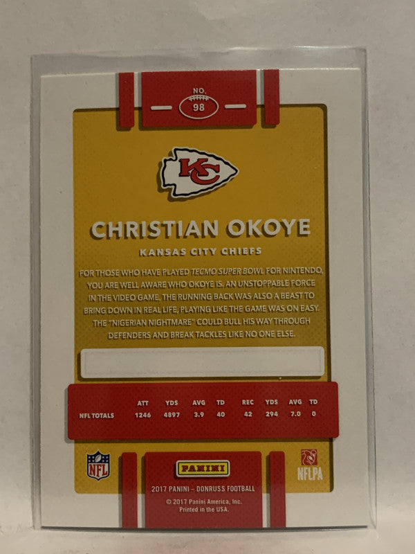 #98 Christian Okoye Kanasas City Chiefs 2017 Donruss Football Card