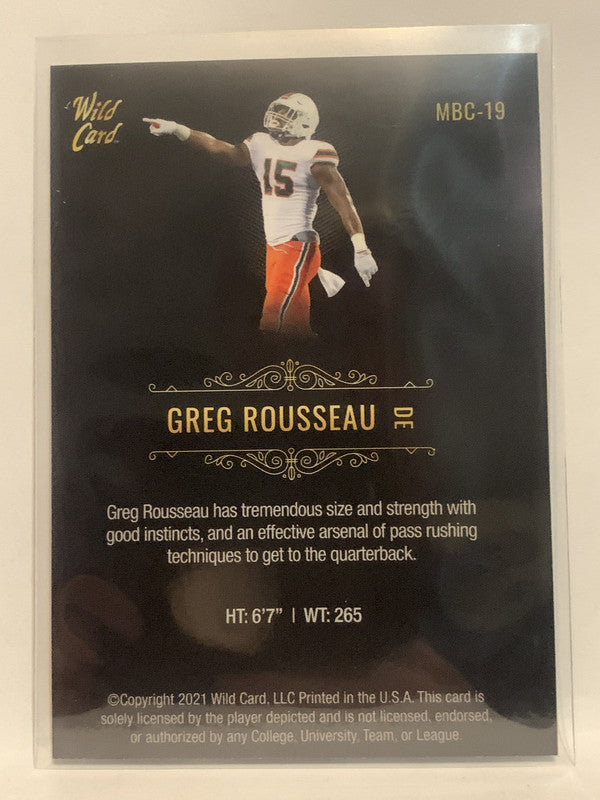 #MBC-19 Greg Rousseau Rookie Miami 2021 Wild Card Matte Football Card NHL