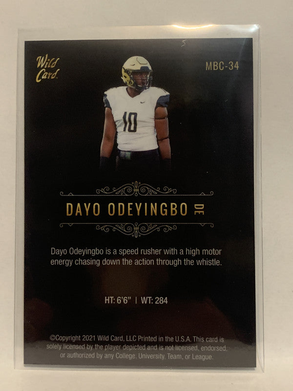 #MBC-34 Dayo Odeyingbo Rookie Vanderbilt 2021 Wild Card Matte Football Card NHL