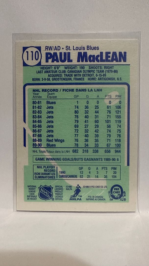 #110 Paul MacLean St Louis Blues 90-91 O-Pee-Chee Hockey Card