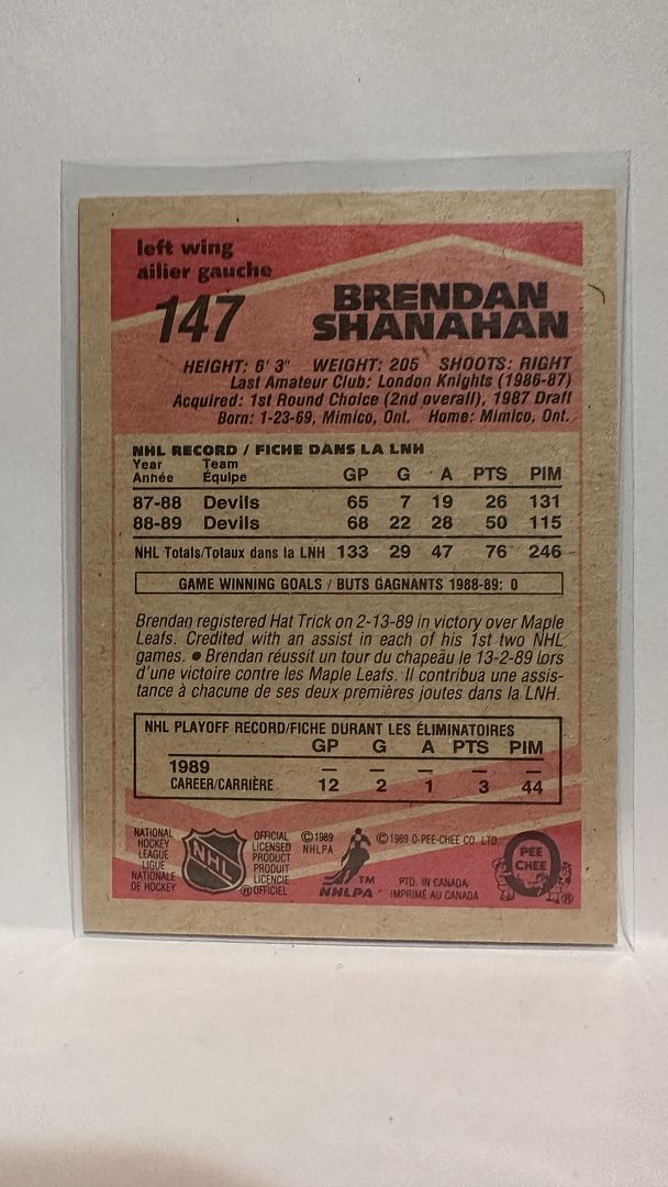 #147 Brendan Shanahan New Jersey Devils 89-90 O-Pee-Chee Hockey Card