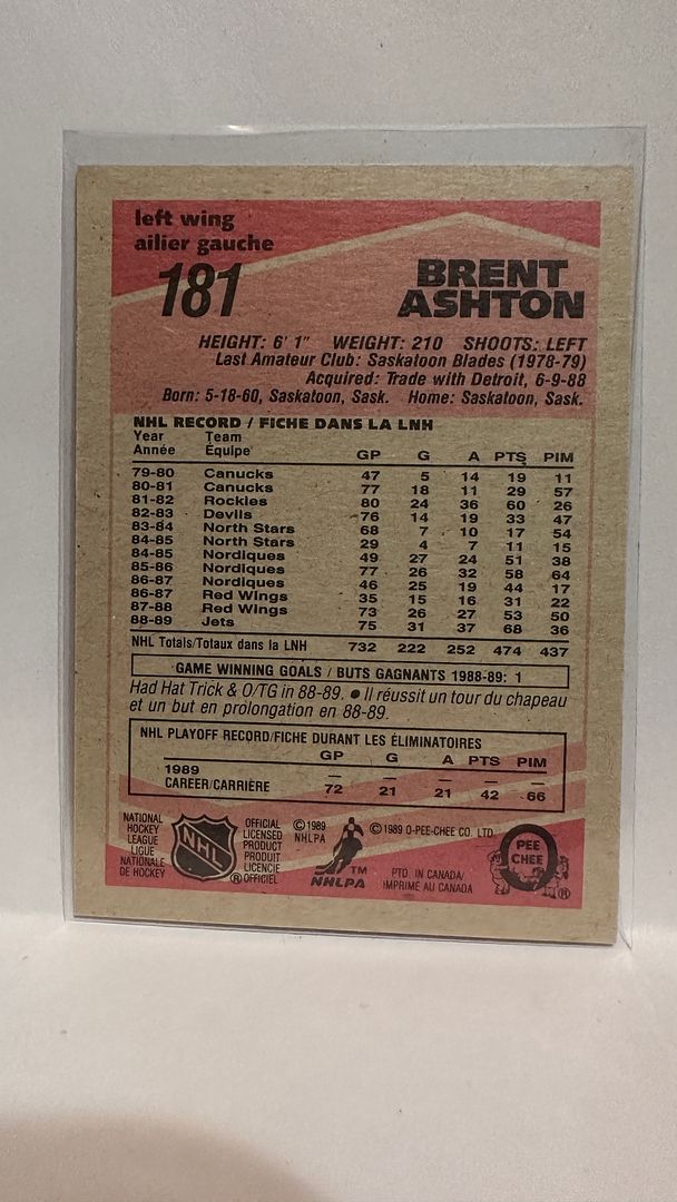 #181 Brent Ashton Winnipeg Jets 89-90 O-Pee-Chee Hockey Card