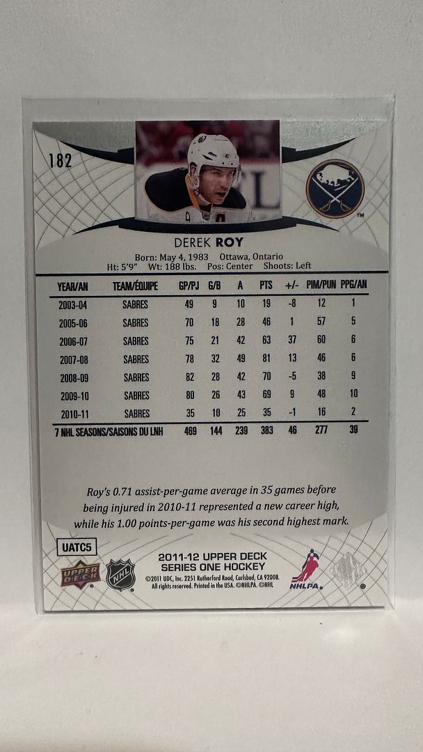 #182 Derek Roy Buffalo Sabres 11-12 Upper Deck Series 1 Hockey Card