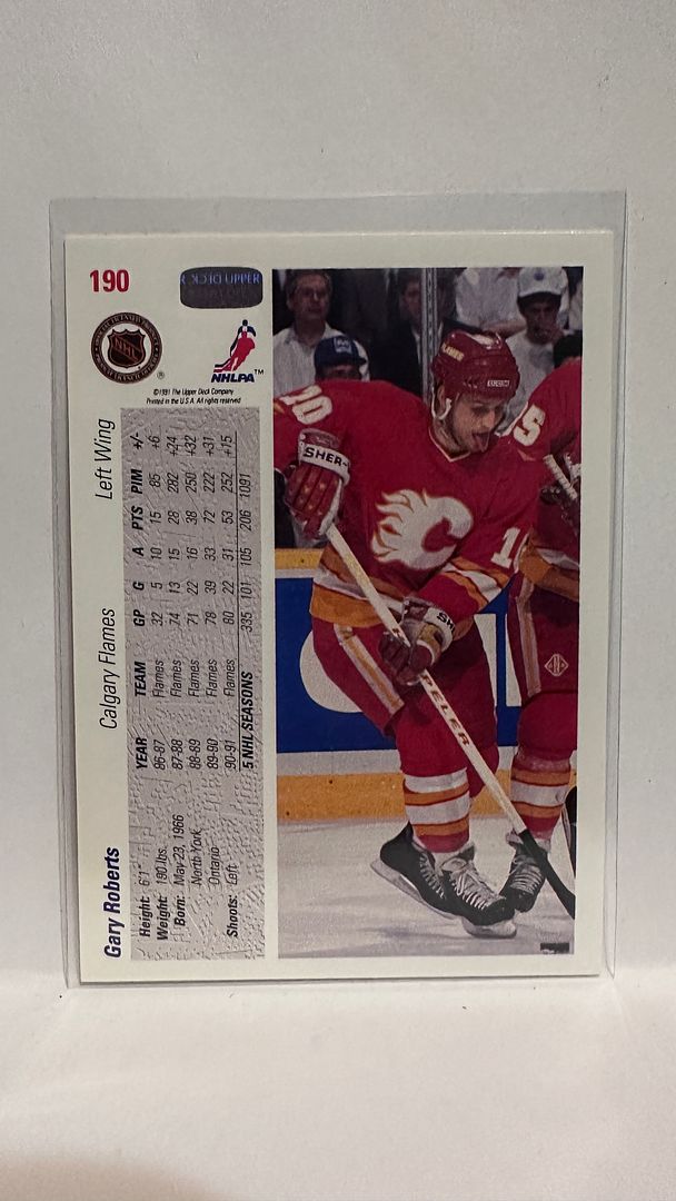 #190 Gary Roberts Calgary Flames 91-92 Upper Deck Hockey Card