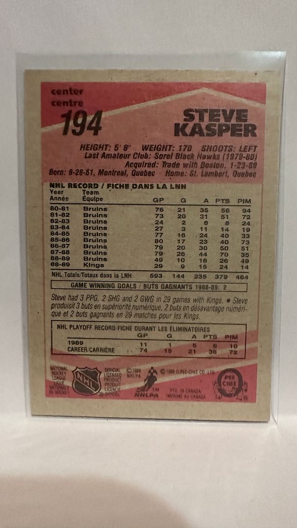 #194 Steve Kasper Los Angeles Kings 89-90 O-Pee-Chee Hockey Card