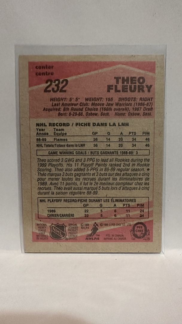 #232 Theo Fleury Calgary Flames 89-90 O-Pee-Chee Hockey Card