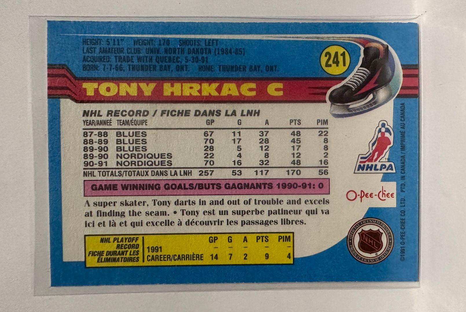 #241 Tony Hrkac San Jose Sharks 91-92 O-Pee-Chee Hockey Card