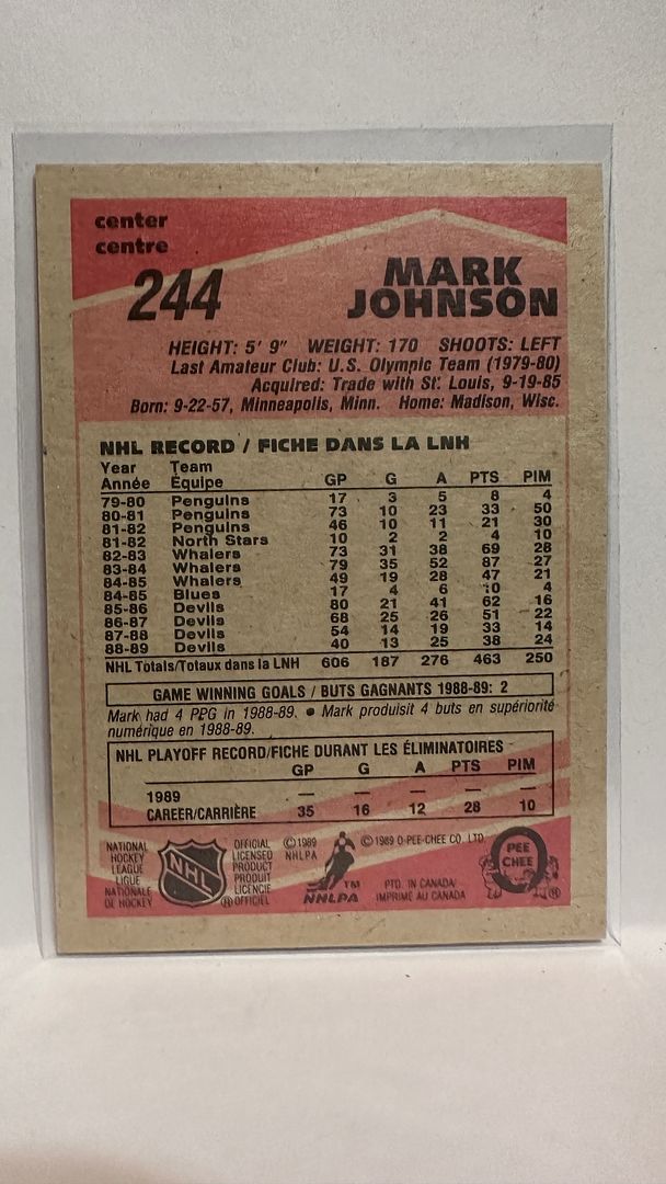 #244 Mark Johnson New Jersey Devils 89-90 O-Pee-Chee Hockey Card