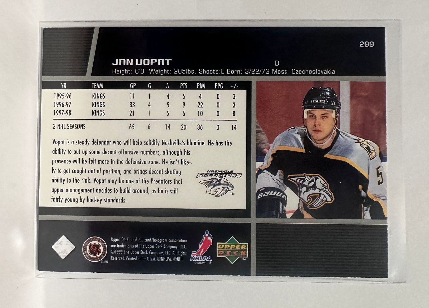 #299 Jan Vopat Nashville Predators 98-99 Upper Deck Hockey Card